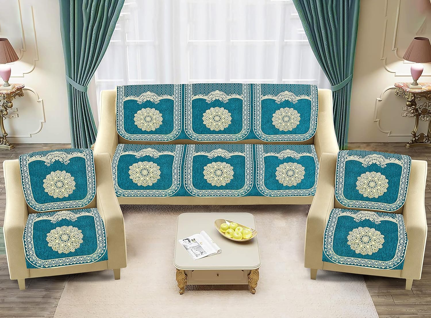 Dazzling DECOR Velvet Sofa Cover 3 Seater and 2 Seater - Premium Sofa Cover 5 Seater Full Cover Set for Couch- Heavy Fabric Sofa Seat Cover Slip Protector, 2922_Aqua