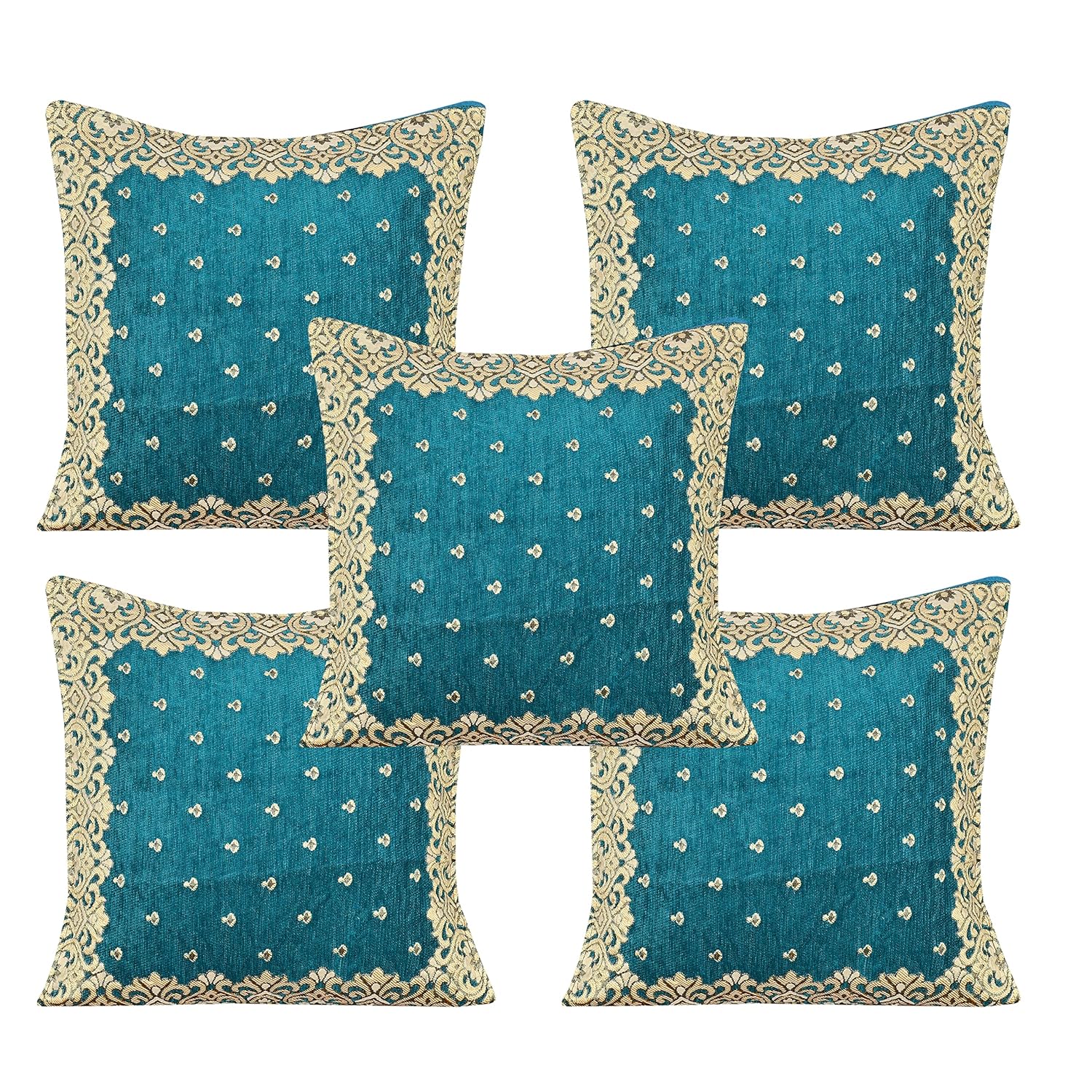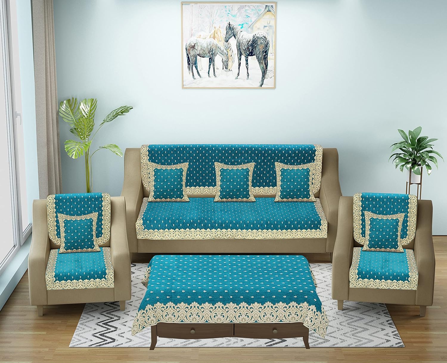 Dazzling DECOR Sofa Seater Slip Covers 5 Seater with Cushion and Table Cover - 3+2 Seater Velvet Sofa Cover Set for Single Sofa Couch - Latest Sofa Seat Protector Slip and Back Covers, 2801_Sky