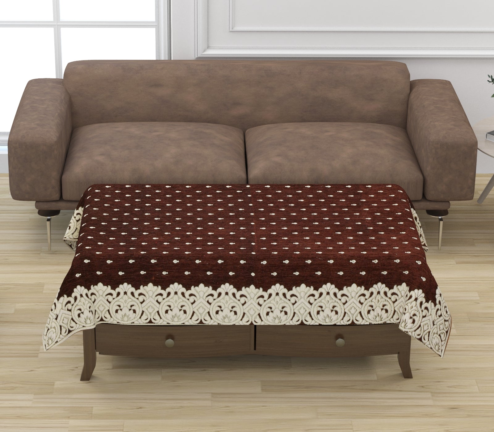 JAYVAAM Checkered 4 Seater Table Cover (Brown, Velvet)