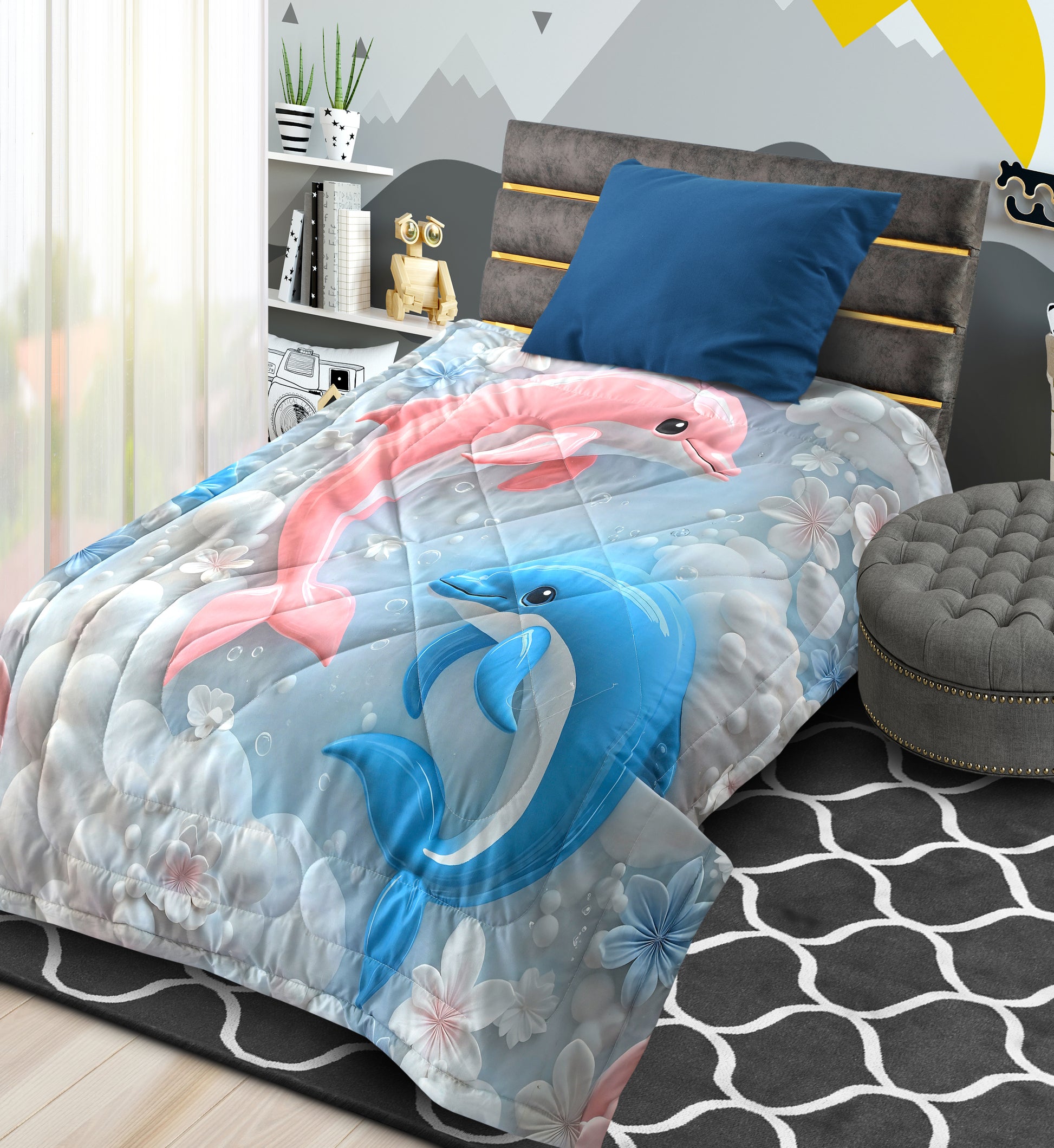 Size Kids Comforter Included Components Comforter Colour Dolphin Style Designer Brand jayvaam Theme Pastel Pattern Print Material Cotton Blend Fabric Type Cotton Blend Number of Pieces 1
