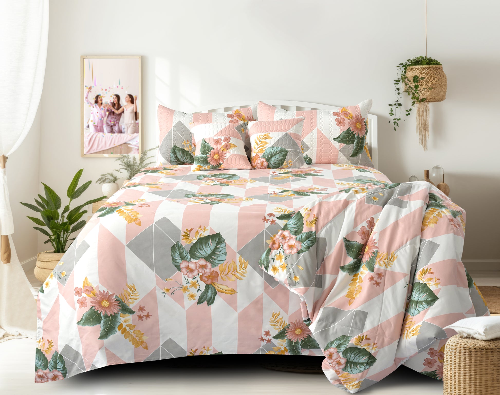 jayvaam Super Premium Designer 6-Piece Comforter Set - Double Bed Size (90”x100”) - Heavy Cotton Blend with Reversible Comforter, Bedsheet, Pillow Covers & Cushion Covers (Pink, 6 Pc Comforter Set)