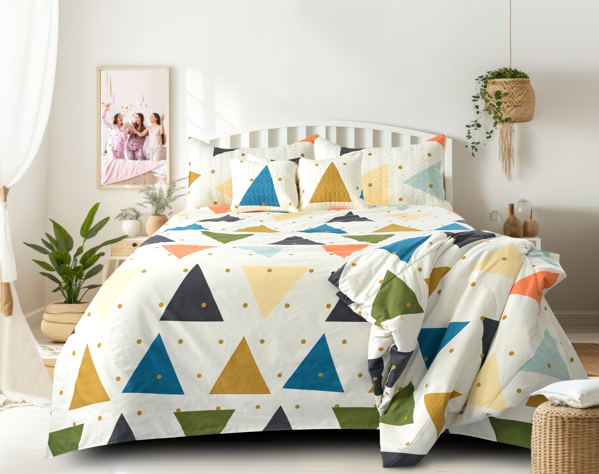 Size 6 Pc Comforter Set Included Components 1 Bedsheet, 2 Cushion Covers With Fillers, Comforter, Pillow Cover Colour White Style Designer Brand jayvaam Theme Pastel Pattern Print Material Cotton Blend Fabric Type Cotton Blend Number of Pieces 6